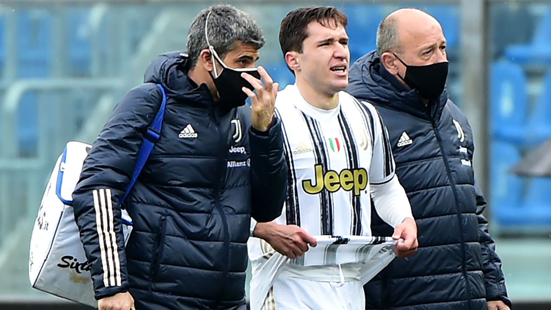 (function(w,d,s,l,i){w[l]=w[l]||[];w[l].push({'gtm.start': new Date().getTime(),event:'gtm.js'});var f=d.getElementsByTagName(s)[0], j=d.createElement(s),dl=l!='dataLayer'?'&l='+l:'';j.async=true;j.src= 'https://www.googletagmanager.com/gtm.js?id='+i+dl;f.parentNode.insertBefore(j,f); })(window,document,'script','dataLayer','GTM-T4S39TC'); grecaptcha.ready(function() { grecaptcha.execute('6LeaCm0lAAAAAJk-8YrUcXgyA81YOGqyzEgCTWkN', {action: 'pageview'}).then(function(token) { var score = token.score; var dataLayer = window.dataLayer || []; dataLayer.push({ 'reCaptchaScore': score }); }); });Con Morata e Dybala titolari insieme dopo cinque mesi, senza Cristiano Ronaldo, la Juventus ha schierato come di consueto anche Federico Chiesa per l'essenziale sfida in chiave Champions contro l'Atalanta. La gara dell'ex Fiorentina però si è conclusa a inizio primo tempo.