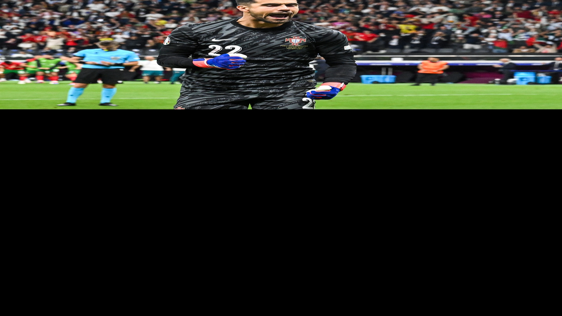 Getty ImagesDiogo Costa esulta dopo aver parato un rigore contro la Slovenia