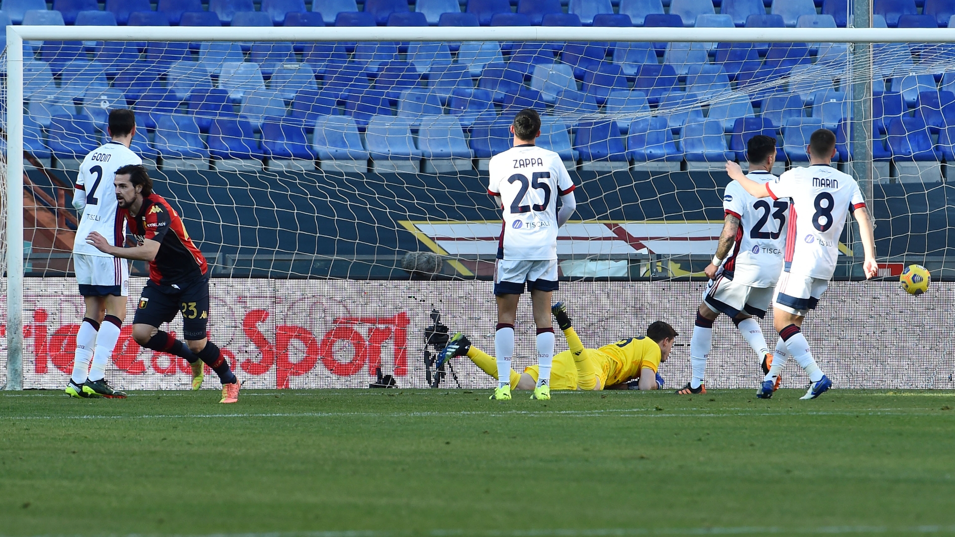 Determinante in questo senso è Mattia Perin, che poco dopo la mezz'ora nega per due volte la possibilità dell'1-1 al Cagliari: prima sforna un miracolo su João Pedro, poi si ripete sull'ex Simeone. Nel mezzo anche una gran botta di Nainggolan che sfiora il palo. Mentre nella ripresa il Genoa non sfrutta alcune ripartenze golose con Shomurodov e Zajc, oltre a un doppio spreco nella stessa azione con Zappacosta e Pandev. Ma al 90' è Cerri a mangiarsi la palla dell'1-1, calciando alto davanti a Perin.