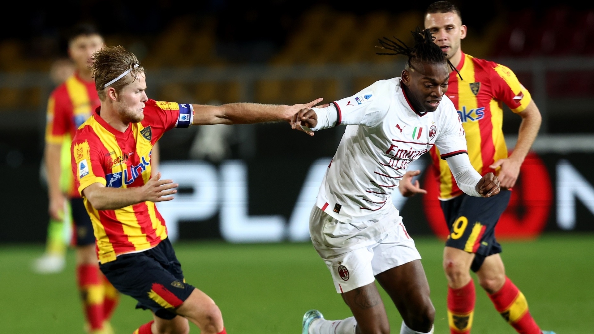 Primo tempo da incubo per il Milan: il Lecce aggredisce i rossoneri, svagati in avvio, e passa subito al 3'. Kalulu perde banalmente palla, Di Francesco crossa in area ed Hernandez nel disperato tentativo di anticipare Blin spedisce alla spalle del proprio portiere Tatarusanu.