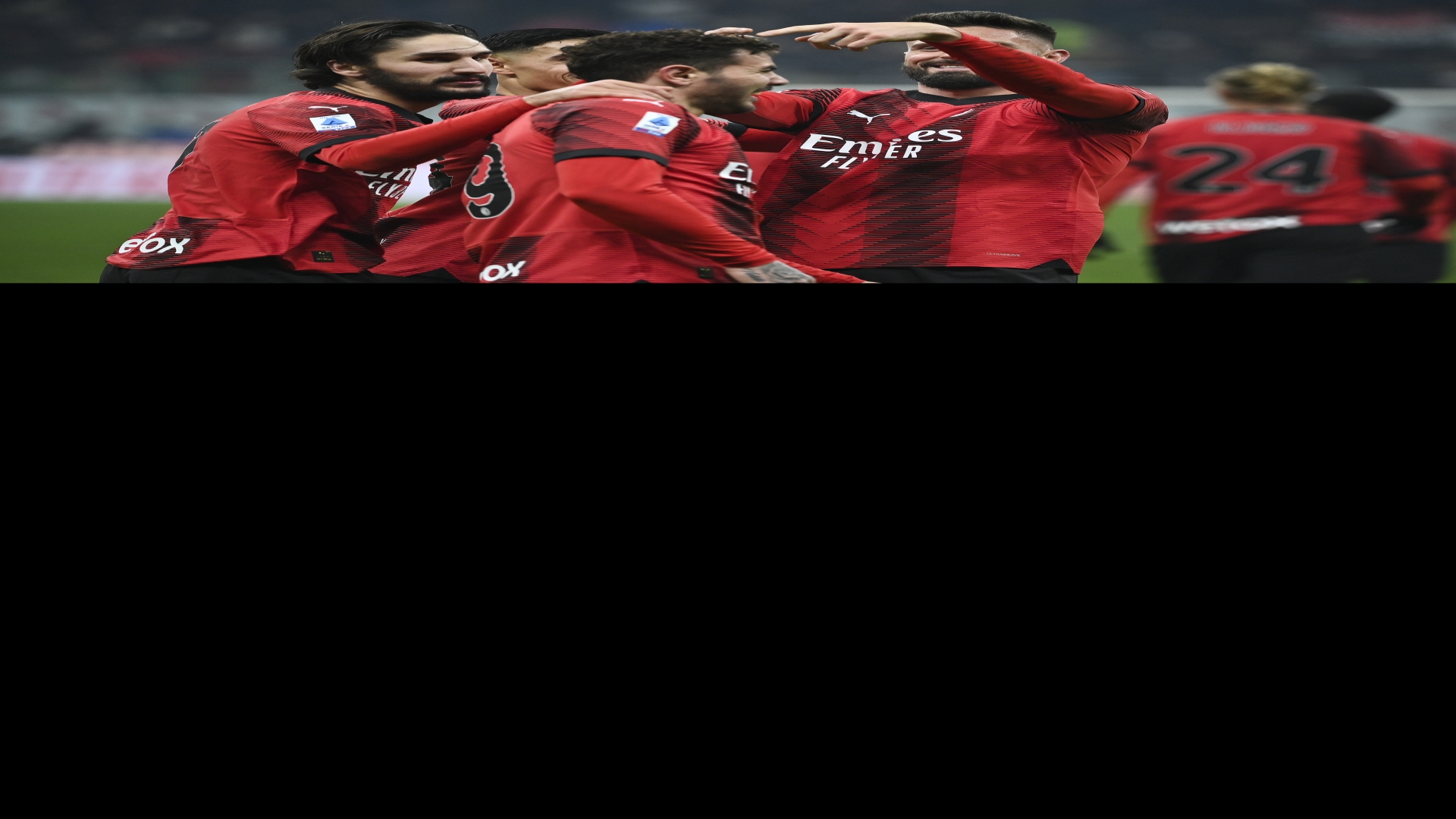 Getty ImagesIl Milan esulta dopo il gol contro la Roma