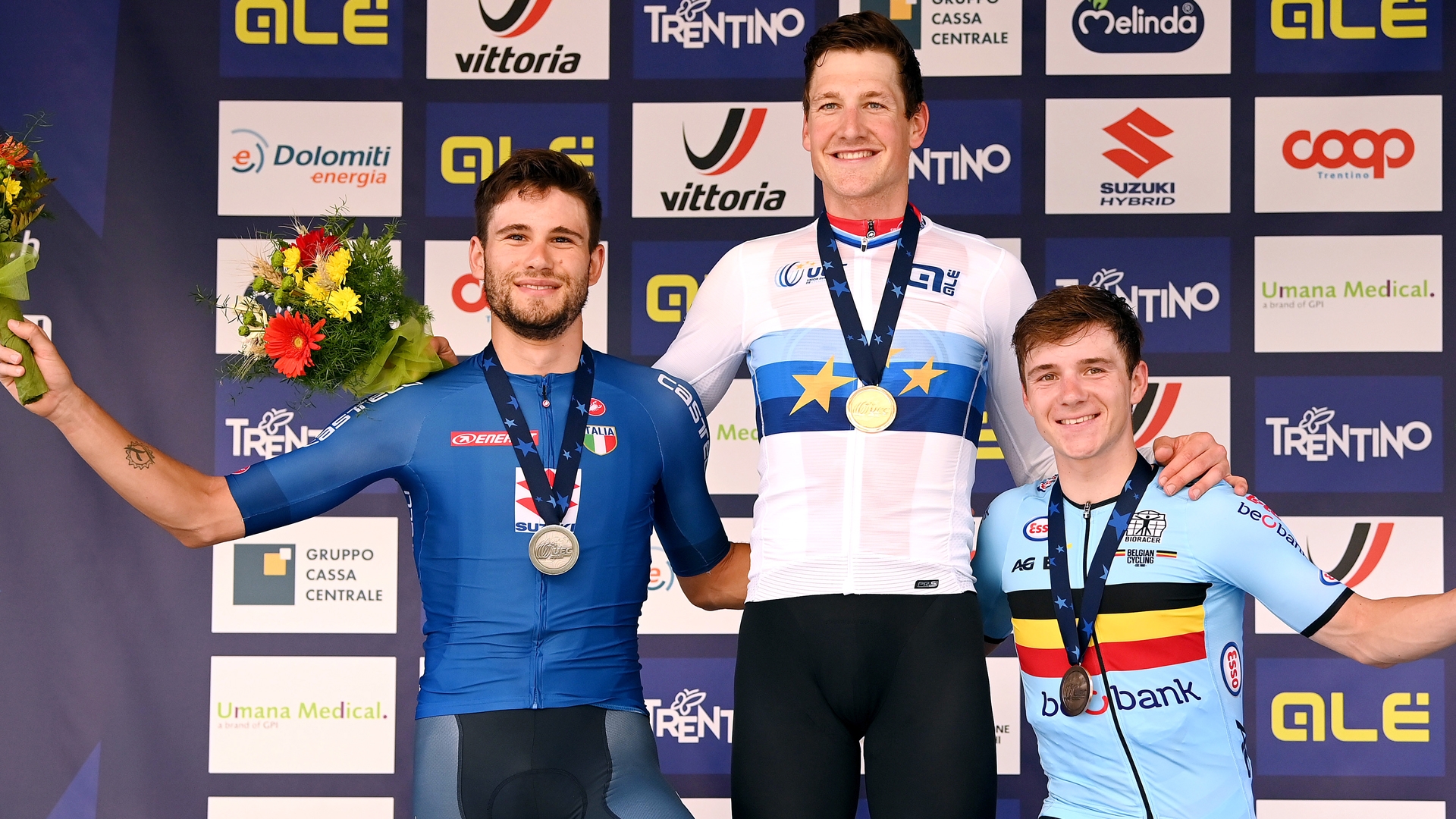Getty ImagesGanna, Kueng, Evenepoel: il podio della cronometro all\'Europeo 2021